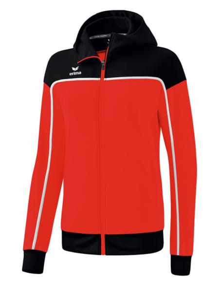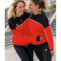 Slitstark träningsjacka i tåligt funktionsmaterial. Ribbstickad kant på ärmar och midja. Fickor med blixtlås. Hög krage med huva. Damskärning.