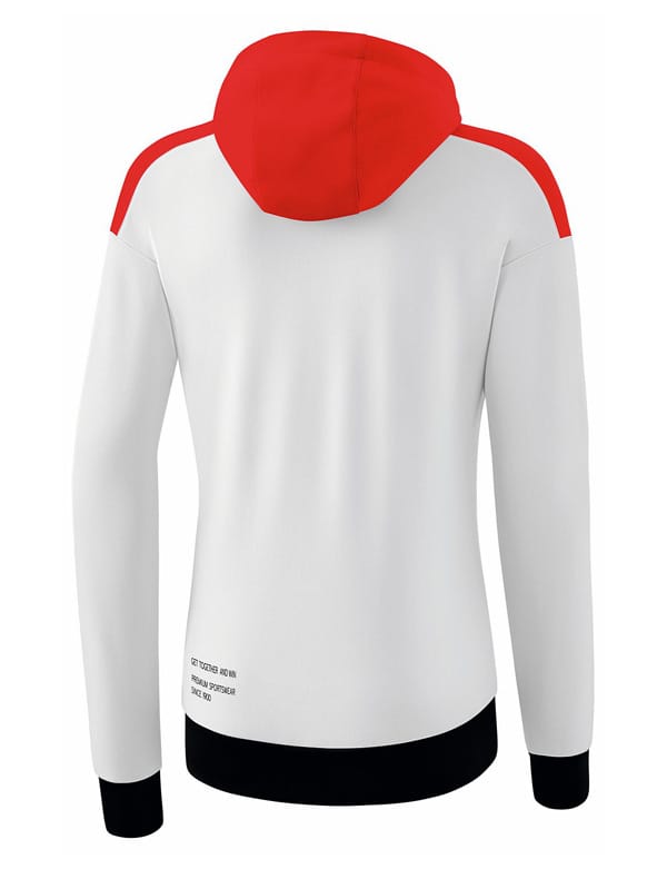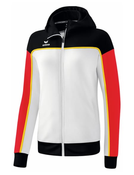 Slitstark träningsjacka i tåligt funktionsmaterial. Ribbstickad kant på ärmar och midja. Fickor med blixtlås. Hög krage med huva. Damskärning.