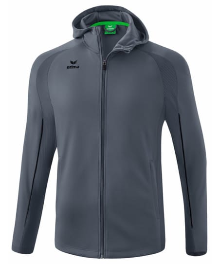 Träningsjacka med huva i slitstarkt funktionsmaterial. Ståkrage för värme och skydd. Fickor med blixtlås. Rak skärning i midja. Stretchiga och ventilerande isättningar för ökad rörlighet och komfort.