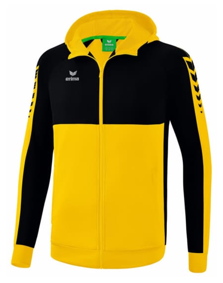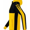 Perfekt träningsjacka i mjuk och tålig materialblandning. Ribbstickat resår i midja och ärmslut. Sidofickor med dragkedjor. Hög krage med huva.