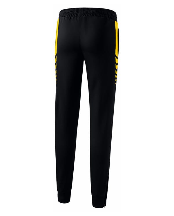 Overallsbyxa i slitstarkt funktionsmaterial. Elastiskt resår och dragsko i midja. Fickor med blixtlås. Avsmalnande ben med ribbstickat benavslut och dragkedjor. Damskärning.