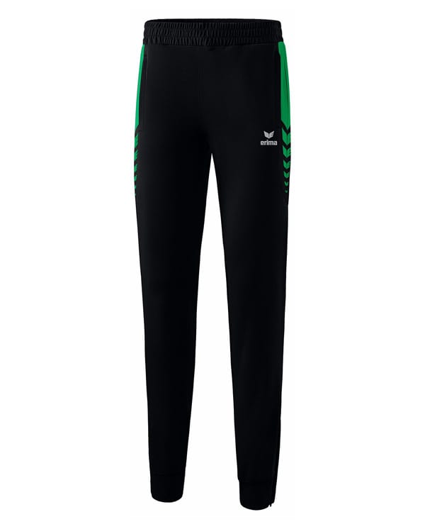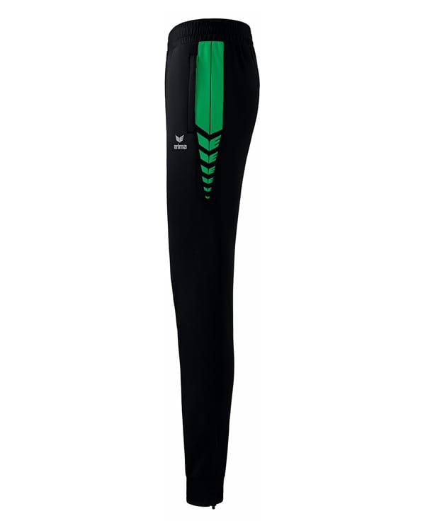 Overallsbyxa i slitstarkt funktionsmaterial. Elastiskt resår och dragsko i midja. Fickor med blixtlås. Avsmalnande ben med ribbstickat benavslut och dragkedjor. Damskärning.