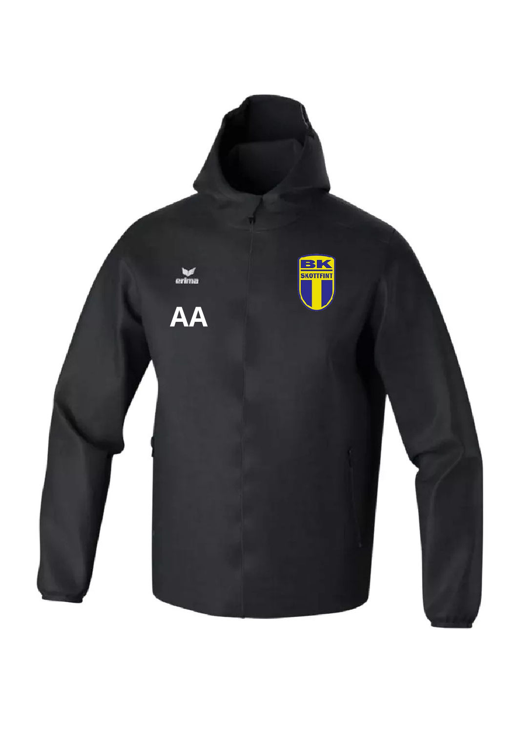 Funktionell regn- och vindjacka med svetsade sömmar. Meshfoder. Med huva. 1500 mm vattenpelare. Klubbmärkestryck ingår i priset.